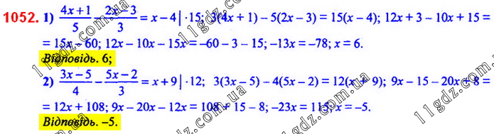 § 4. Системи лінійних рівнянь із двома змінними » 1052