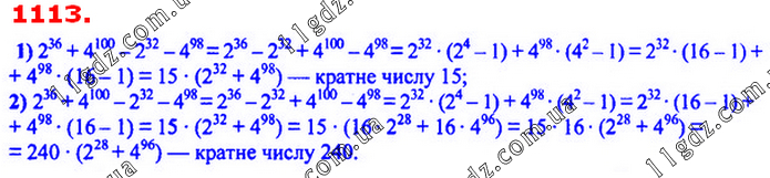 Доведіть, що значення виразу 236 + 4100 – 232 – 498 кратне числу: 1) 15; 2) 240.