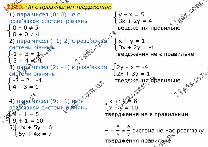 § 4. Системи лінійних рівнянь із двома змінними » 1120
