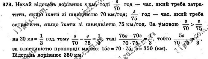 373. Автомобіль мав проїхати деякий шлях, рухаючись зі швидкістю 70 км/год. Якби він їхав зі швидкістю на 5 км/год більшою, то здолав би цей шлях на 20 хв швидше. Який шлях мав проїхати автомобіль?