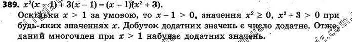 389. Дано многочлен x3 – х2 + 3x – 3. Доведіть, що для x > 1 він набуває лише додатних значень.