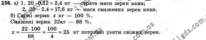 238. Кавові зерна у процесі смаження втрачають 12% своєї маси. а) Скільки кілограмів смажених зерен вийде із 20 кг свіжих? б) Скільки кілограмів свіжих зерен слід узяти, щоб отримати 22 кг сма-жених?
