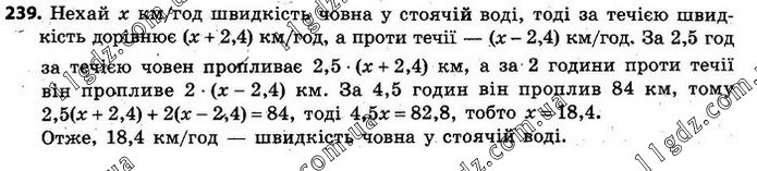 Човен проплив 84 км за 4,5 год, до того ж, протягом 2,5 год він плив за течією річки i протягом 2 год — проти течії. Яка швидкість човна у сто-ячій воді, якщо швидкість течії річки дорівнює 2,4 км/год?