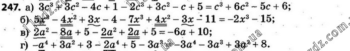 247. а) 3с3 + 3с2 – 4с + 1 і 2с3 – 3с2 + с – 5; б) 5х3 – 4х2 + 3х – 4 і 7х3 – 4х2 + 3х + 11; в) 2а2 – 8а + 5 і 2а2 – 2а – 5; г) –а4 + 3а2 + 3 і 2а4 – 5 + 3а3.