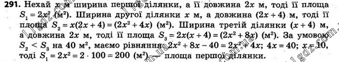 Дано три ділянки прямокутної форми. Довжина першої ділянки удвічі більша від її ширини. Друга ділянка має таку ж ширину, як перша, а довжину на 4 м більшу, ніж перша. Третя ділянка має таку ж довжину, як перша, а ширину на 4 м більшу, ніж перша. Знайдіть площу першої ділян-ки, якщо площа другої ділянки менша від площі третьої на 40 м2.