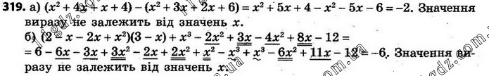 319. а) (х + 1)(х + 4) – (х + 2)(х + 3); б) (1 – х)(2 – х)(3 – х) + (x – 4)(x2 – 2x + 3).