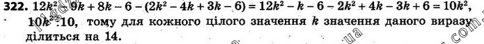 322. (3k + 2)(4k – 3) – (2k + 3)(k – 2) ділиться на 10.
