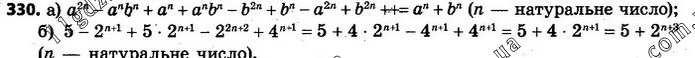 330. Спростіть вираз (n — натуральне число): а) (an + bn)(an – bn + 1) – a2n + b2n; б) (1 + 2n + 1)(5 – 2n + 1) + 4n + 1.