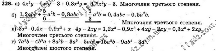а) 4x2y – 6х2y – 3 + 0,3x2y; б) 1,2abc +5/6 а2b – 0,8abc – 11/3а2b; в) 3x2 · 0,4x – 0,9x3 + x · 4y – 2xy; г) 7a5b – 4b5a + 8а5b – 3а5 – 5аb5.