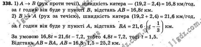 Від пристані А до пристані В катер плив на 20 хв довше, ніж від В до А. Знайдіть відстань між пристанями, якщо швидкість катера у стоячій воді дорівнює 19,2 км/год, а швидкість течії річки — 2,4 км/год.
