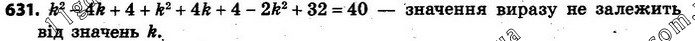 Доведіть, що значення виразу (k – 2)2 + (k + 2)2 – 2(k – 4)(k + 4) не зале-жать від значень k.