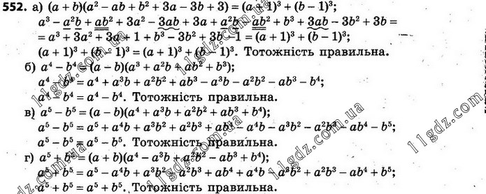 § 4. ФОРМУЛИ СКОРОЧЕНОГО МНОЖЕННЯ » 552