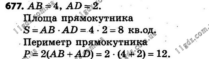 677. Знайдіть периметр і площу прямокутника ABCD, якщо А(–1; –1), В(3; –1), С(3; 1).
