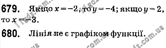 679. Функція задана графіком (див. рис. 10). Знайдіть значення функції, як-що х = –2. Якому значенню аргументу відповідає значення функції у = 2? Яка область визначення та область значень функції? 680. Чи є лінія, зображена на рисунку 11, графіком деякої функції? Відповідь обґрунтуйте.