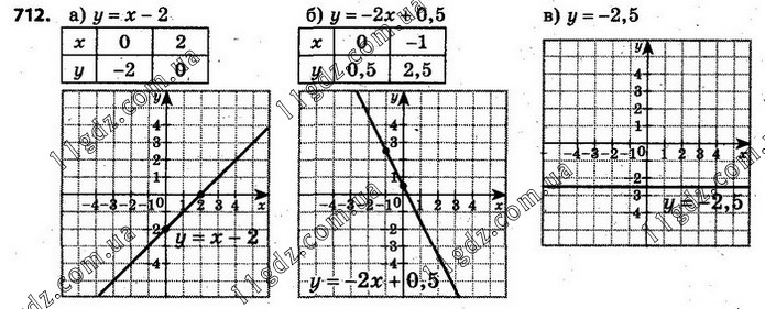 а) у = х – 2; б) у = –2х + 0,5; в) у = –2,5.