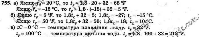 755. У деяких країнах (наприклад, у США, Канаді) температуру повітря ви-мірюють у градусах Фаренгейта. Температура в градусах Фаренгейта (tF) виражається через температуру в градусах Цельсія (tС) за формулою tF = 1,8tС + 32. а) Знайдіть tF, якщо tС = 20 °С; tС = –15 °С. б) Знайдіть tС, якщо tF = 5 °F; tF = 50 °F. в) Знайдіть у градусах Фаренгейта температуру плавлення льоду, темпе-ратуру кипіння води.