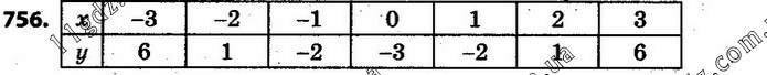 756. Функція задана формулою у = х2 – 3, де змінна х може набувати значень: – 3; –2; –1; 0; 1; 2; 3. Задайте цю функцію таблицею.