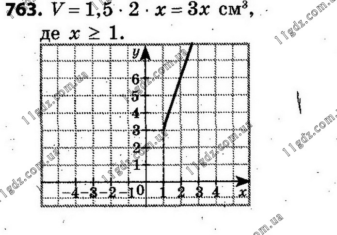 763. Виміри прямокутного паралелепіпеда дорівнюють 1,5 см, 2 см та х см, де х ≥ 1. Запишіть формулу, яка задає залежність об’єму V паралелепіпе-да (у кубічних сантиметрах) від х. Побудуйте графік функції, яка зада-ється цією формулою.