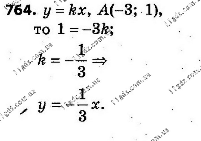 764. Запишіть формулу прямої пропорційності, якщо її графік проходить через точку A(–3; 1).