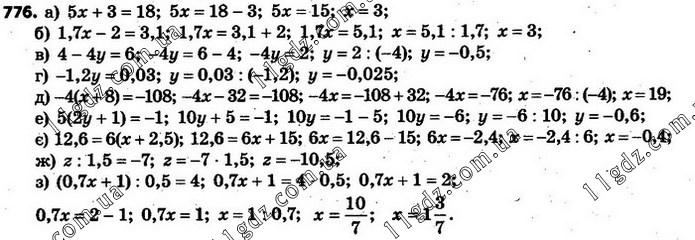 § 6. ЛІНІЙНІ РІВНЯННЯ З ОДНІЄЮ ЗМІННОЮ » 776
