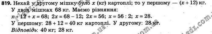 819. У двох мішках є 68 кг картоплі, до того ж, у першому мішку на 12 кг картоплі більше, ніж у другому. Скільки кілограмів картоплі є в кожно-му мішку?
