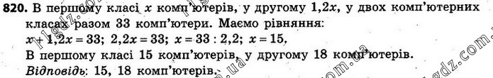 820. У двох комп’ютерних класах є разом 33 комп’ютери, до того ж, в одно-му класі їх в 1,2 разу більше, ніж в іншому. Скільки комп’ютерів є в кожному класі?
