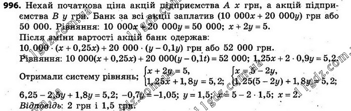 § 7. СИСТЕМИ ЛІНІЙНИХ РІВНЯНЬ ІЗ ДВОМА ЗМІННИМИ » 996