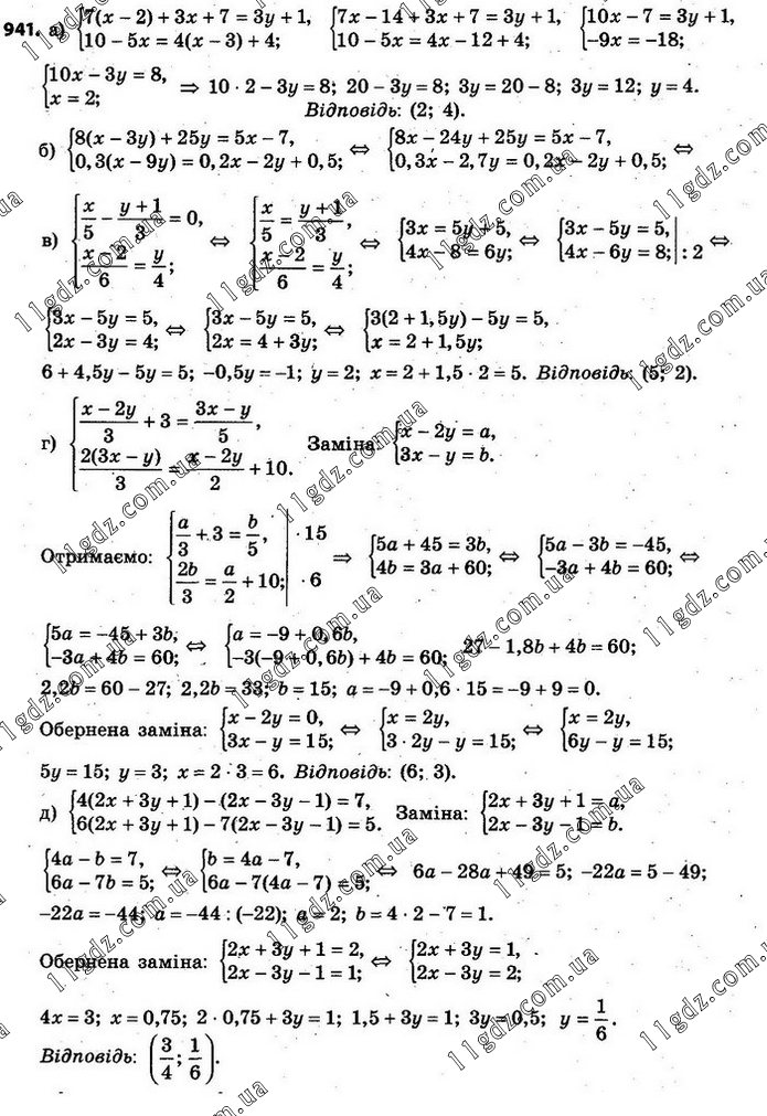 § 7. СИСТЕМИ ЛІНІЙНИХ РІВНЯНЬ ІЗ ДВОМА ЗМІННИМИ » 941