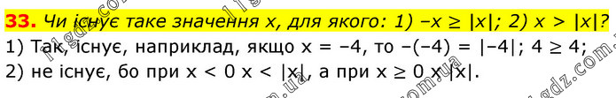 Чи існує таке значення х, для якого: 1) –х ≥ |х|; 2) х > |x|? 1) Так, існує, наприклад, якщо х = –4, то –(–4) = |–4|; 4 ≥ 4; 2) не існує, бо при х < 0 х < |х|, а при х ≥ 0 х |x|.