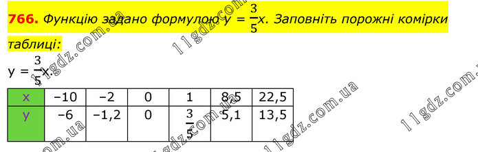 Функцію задано формулою у = 3/5х. Заповніть порожні комірки таблиці: у = 3/5х.
