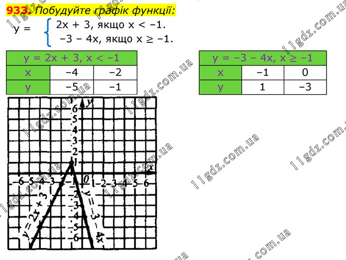 Побудуйте графік функції: 2x + 3, якщо x < –1. –3 – 4x, якщо x ≥ –1.