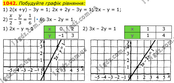 Побудуйте графік рівняння: 1) 2(x +y) – 3y = 1; 2x + 2y – 3y = 1; 2x – y = 1;