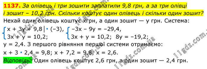 За олівець і три зошити заплатили 9,8 грн, а за три олівці і зошит – 10,2 грн. Скільки коштує один олівець і скільки один зошит