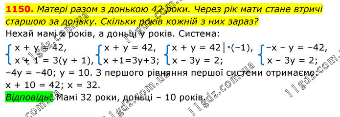 Матері разом з донькою 42 роки. Через рік мати стане втричі старшою за доньку. Скільки років кожній з них зараз?
