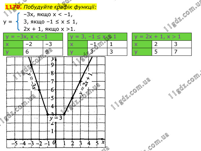 Побудуйте графік функції: –Зх, якщо х < –1, у = 3, якщо –1 ≤ х ≤ 1, 2х + 1, якщо х >1.