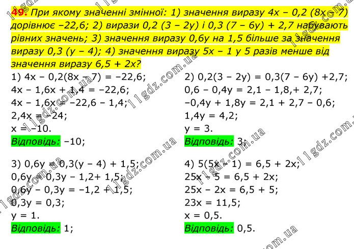 § 1. Лінійне рівняння з однією змінною » 49
