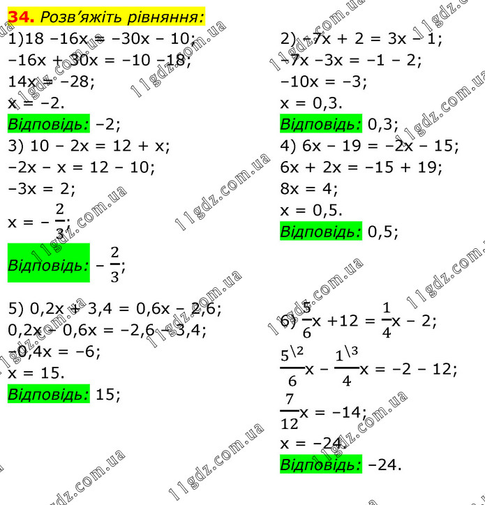 § 1. Лінійне рівняння з однією змінною » 34