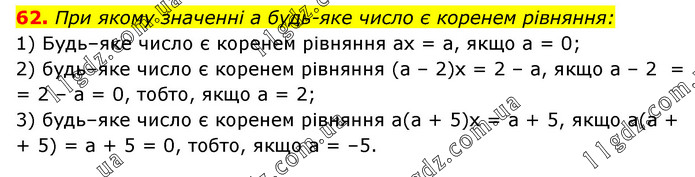 § 1. Лінійне рівняння з однією змінною » 62