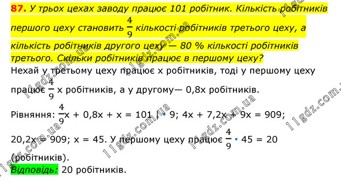 § 1. Лінійне рівняння з однією змінною » 87