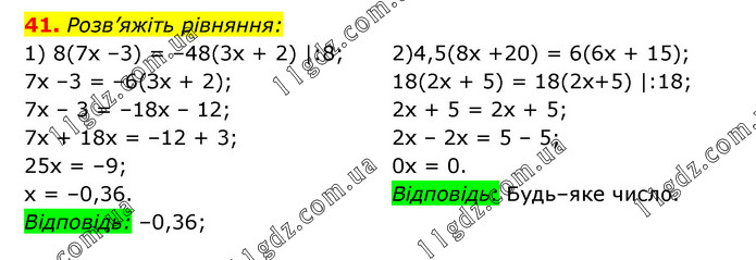 § 1. Лінійне рівняння з однією змінною » 41