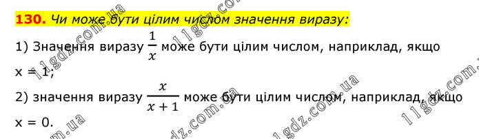 Чи може бути цілим числом значення виразу: 1) Значення виразу 1/x може бути цілим числом, наприклад, якщо х = 1; 2) значення виразу x/(x + 1) може бути цілим числом, наприклад, якщо х = 0.