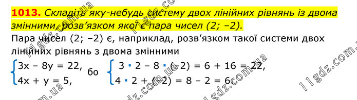 § 4. Системи лінійних рівнянь із двома змінними » 1013