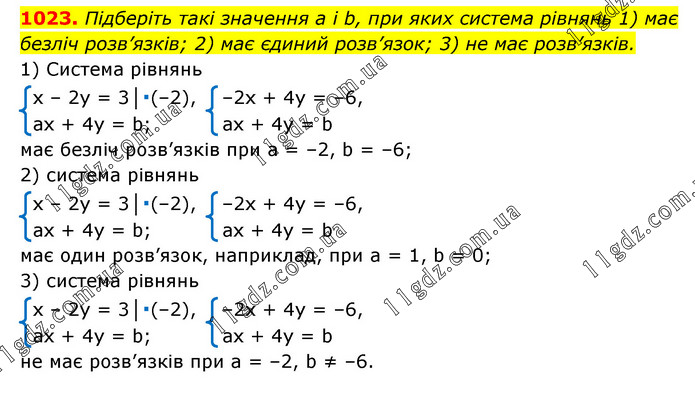 § 4. Системи лінійних рівнянь із двома змінними » 1023