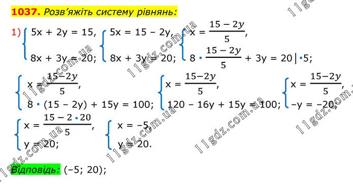§ 4. Системи лінійних рівнянь із двома змінними » 1037 (1)