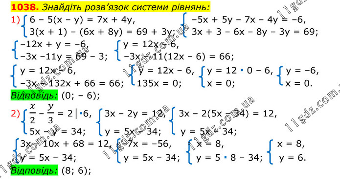 § 4. Системи лінійних рівнянь із двома змінними » 1038 (1-2)