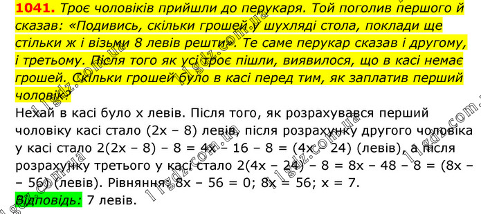 § 4. Системи лінійних рівнянь із двома змінними » 1041
