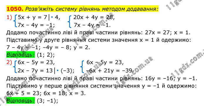 § 4. Системи лінійних рівнянь із двома змінними » 1050 (1-2)