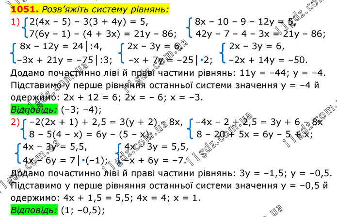 § 4. Системи лінійних рівнянь із двома змінними » 1051 (1-2)