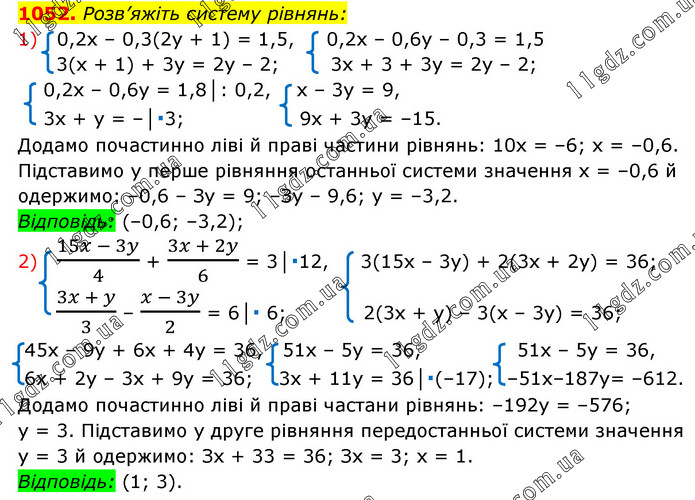 § 4. Системи лінійних рівнянь із двома змінними » 1052 (1-2)