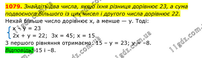 § 4. Системи лінійних рівнянь із двома змінними » 1079
